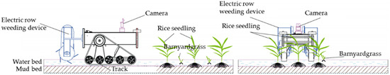 Weeds occupy a large proportion of the agricultural paddy ecosystem and compete with rice for growth space, fertilizer, nutrients, light, water and heat resources, resulting in a decline in rice yield and quality, which has a direct effect on national food security and productivity [1,2,3]. According to data analysis, the annual loss of rice yield caused by weeds was approximately 15% [4]. Chemical spraying is the main traditional weeding method, but this approach leads to pesticide residue, soil hardening and other problems, which is not conducive to the sustainable development of agricultural production [5]. In recent years, mechanical weeding has become a key measure for the production of organic rice because of its advantages of not polluting the environment, increasing soil aeration, and improving the soil temperature. Mechanical weeding has become the main method to improve the quality of rice and ensure the safety of rice [6].