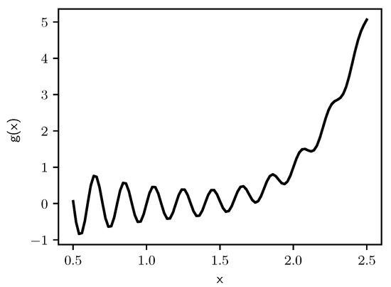 - Forrester, A.I.J.; Sóbester, A.; Keane, A.J. Appendix: Example Problems. In Engineering Design via Surrogate Modelling: A Practical Guide; John Wiley & Sons, Ltd.: Hoboken, NJ, USA, 2008; pp. 195–203. [Google Scholar] [CrossRef] [Green Version]