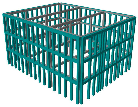 The geometry of the retrofitted building is depicted in Figure 9, where the spacing of the column is selected according to the opening layout of the existing building. Figure 10 shows the 3D view of retrofitted building, while Figure 11 shows the reinforcement layout of beam and column cross-sections of the RC-framed skin.