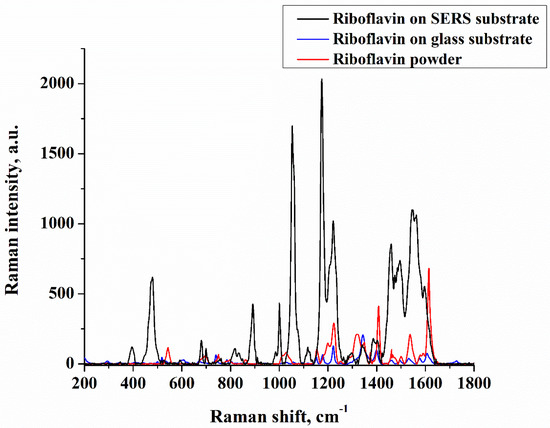 30. Liu, F.; Gu, H.; Lin, Y.; Qi, Y.; Dong, X.; Gao, J.; Cai, T. Surface-enhanced Raman scattering study of riboflavin on borohydride-reduced silver colloids: Dependence of concentration, halide anions and pH values. Spectrochim. Acta Part A 2012, 85, 111–119. [Google Scholar] [CrossRef]