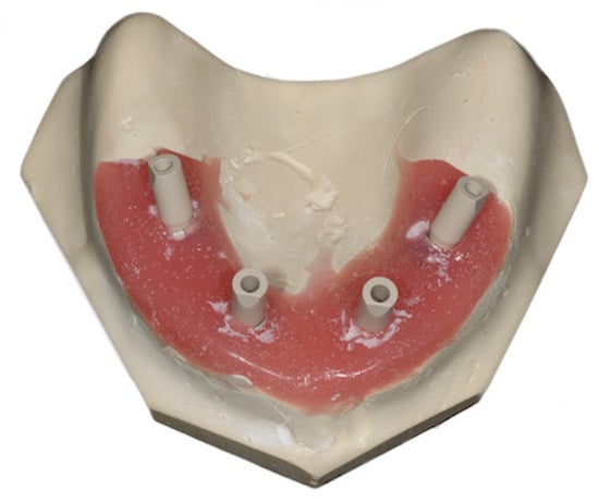 - Sánchez-Monescillo, A.; Hernanz-Martín, J.; González-Serrano, C.; González-Serrano, J.; Duarte, S., Jr. All-on-four rehabilitation using photogrammetric impression technique. Quintessence Int. 2019, 50, 288–293. [Google Scholar] [CrossRef] [PubMed]