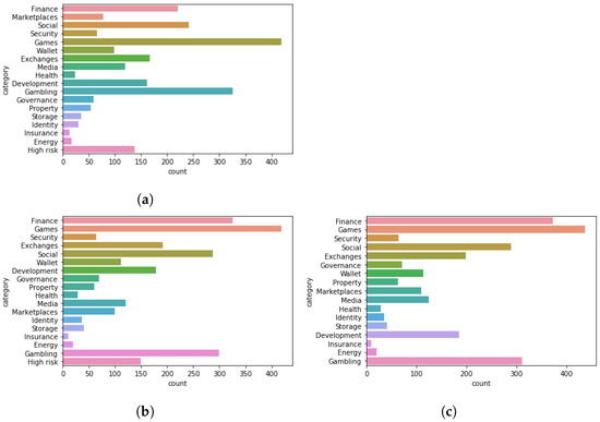 Figure 1a shows the status of the DApps by grouping them into the categories in which the DApps is built in 2019. As we expected, there are several DApps concerning the financial and game DApps; as concerns the social scenario, social DApps are within the top 5 DApps categories, which describes the importance of DApps in the social environment. The trend of the DApps is increasing year by year, as we can see in