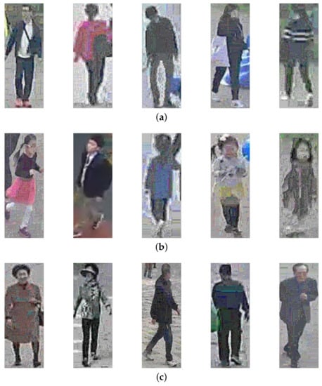 Example images from each class in the dataset: (a) Adult class, (b) Child class, and (c) Elderly class. It should be noted that in each class, there are also images of pedestrians moving in different directions (front-facing, back-facing, side-facing) and with different lighting conditions. Variation in the distance of pedestrians against the camera causes many images to have less-than-ideal quality, which should be taken into consideration in real-life applications.