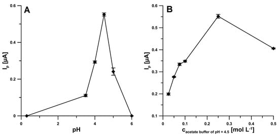 3.2. Optimization of pH and Supporting Electrolyte Concentration