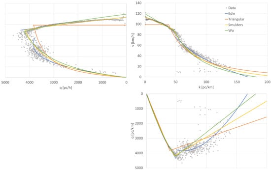 - Drake, J.S.; Schofer, J.L.; May, A.D. A statistical analysis of speed density hypotheses. Highw. Res. Rec. 1966, 154, pp. 53–87. Available online: http://onlinepubs.trb.org/Onlinepubs/hrr/1967/154/154-004.pdf (accessed on 27 December 2017).
