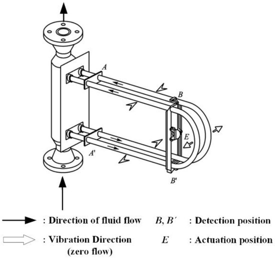 - Zheng, D.; Wang, S.; Fan, S. Nonlinear Vibration Characteristics of Coriolis Mass Flowmeter. Chin. J. Aeronaut. 2009, 22, 198–205. [Google Scholar] [CrossRef][Green Version]