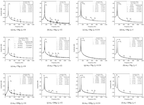 | Additional- Mass Position | Frequencies (Hz) | Amplitudes (dB) | ||||||||||