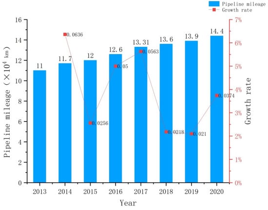 Pipeline mileage and growth rate in 2013–2021.
