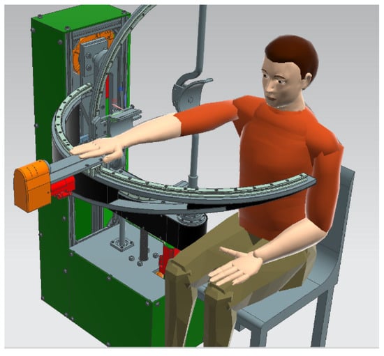 Studies regarding the development of upper limb exoskeletons were also published in [,,,], some of them being based on the study of the dynamic behavior of the exoskeletons and the possibility to control the robotic solutions to maximize the efficiency of the rehabilitation.