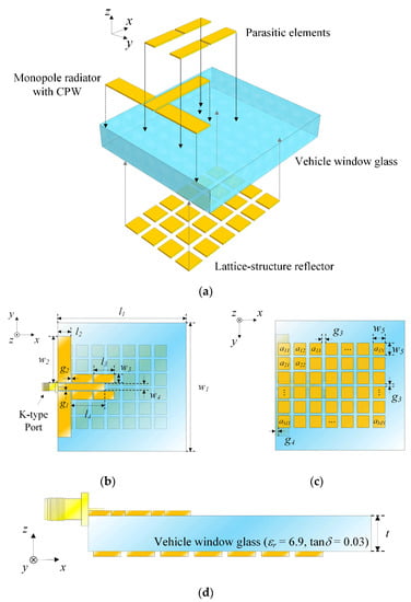 - Ahn, S.; Choo, H. A systematic design method of on-glass antennas using mesh-grid structures. IEEE Trans. Veh. Technol. 2010, 59, 3286–3293. [Google Scholar] [CrossRef]
