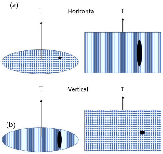Schematic of LOF/porosity in AM materials. It generally has a high aspect ratio of ellipticity in the (a) horizontal direction but low aspect ratio in the (b) vertical direction, relative to the built direction.