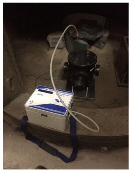 After the explosion, the follower of the gas analyzer for sampling was placed in a special hole, the principle of operation of which was to automatically perform measurements for some time with the results being displayed and saving them in the device’s memory. Then, after each explosion, the chamber was ventilated and treated with a special cleaning compound.