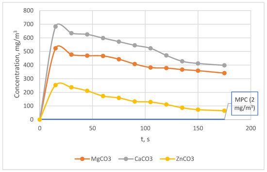 After the comparison with the maximum permissible concentration, it can be noted that zinc carbonate (ZnCO3) is the most effective filler for reducing nitrogen oxide emissions and it allows you to reduce the concentration of released nitrogen oxides.