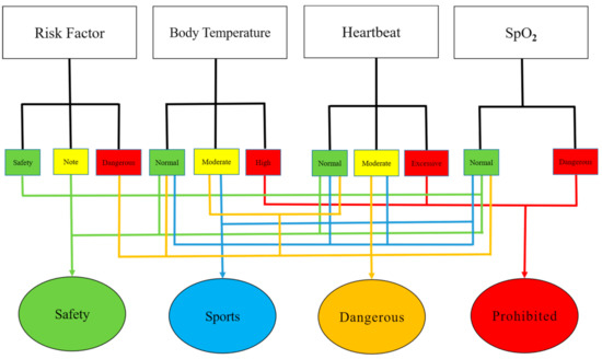 Physiological states have four sets: E1 (safe), E2 (sports), E3 (dangerous), and E4 (prohibited), as shown in Figure 9.