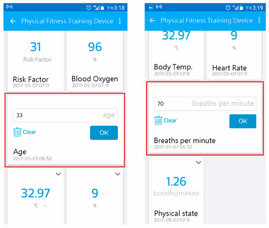 The test environment was a 3000 m run. The testing user was a 33-year-old adult man with a resting heart rate of 70 beats/min. The experiment explored the benefits of the device in a practical environment. First, the user entered his resting heart rate and age on the cloud platform, as shown in Figure 15.