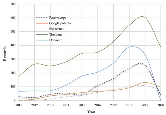 On the other hand, the number of records per database does not reflect the effectiveness of each search engine. For this research, priority was given to those who provided useful data, such as direct links to patents, the inventor’s name, and IPC codes. However, there are some difficulties in processing the records due to the lack of options to filter results or IPC categories. Moreover, some applicants may be included in the name of their companies. This is because some search engines only show the name of the applicant or owner rather than the inventor. In some cases, there is a lack of coherence between the names of the authors in different patents (for example, Chen shuyan and Shuyan, C.). These kinds of inconsistencies were grouped together, but still, the results could not be entirely accurate; the significance of this error does not affect the classification of every system.