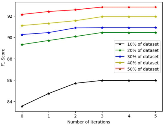 - Repeat steps 3–5 until the F1 score of the test dataset of the Student model no longer increases.