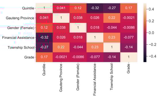 The correlation values for Financial Assistance, Quintile and Township School provided evidence for the authors’ argument that Cultural, Economic and Social Capital regulate the level of success attainable by individuals. Cultural and Economic Capital, combined with the Gender feature, performed better than chance at predicting student performance. A student’s quality of Social Capital available to them also correlated positively with their academic performance.
