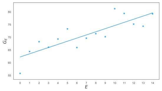 Each student was placed in an Extraversion-level group, E, representing the number of posts they contributed. Each level, E, was then assigned a mean Grade, , computed by averaging the grades of all students in E. Table 5 shows the each Extraversion-level above its associated Grade.
