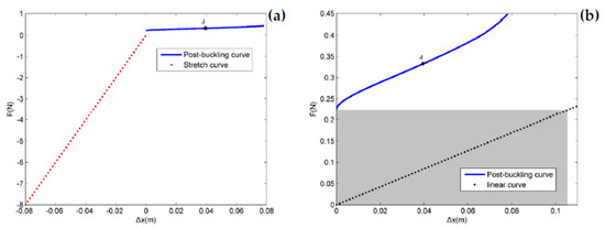 Comparison diagram of recovery force curve. (a) Post-buckling spring vs. stretch spring; (b) post-buckling spring vs. linear spring.
