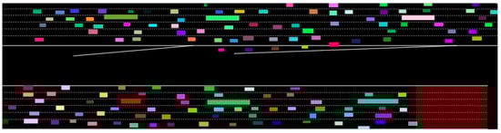The dataset used in this study [29] consists of the trajectories of all the vehicles crossing the eastbound I-80 Freeway in Emeryville, California (USA). Measurements date back to 13 April 2005 and were taken on a tract of approximately 1640 , comprising six lanes and an on-ramp. The full dataset is partitioned into three sequences: 4:00 p.m. to 4:15 p.m., 5:00 p.m. to 5:15 p.m., and 5:15 pm to 5:30 p.m. Intuitively, they correspond to different traffic patterns, from the build-up of congestion to the peak period.