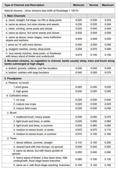 Example of Tabulated Manning’s coefficients for Channels from [18].