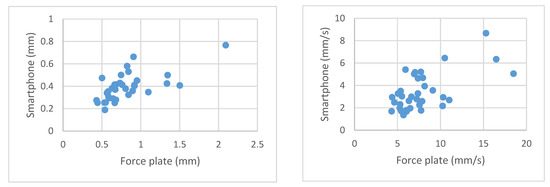 The correlations in the medial–lateral direction fell below 60 (Table 3). Thus, smartphone application and force plate data cannot be correlated.