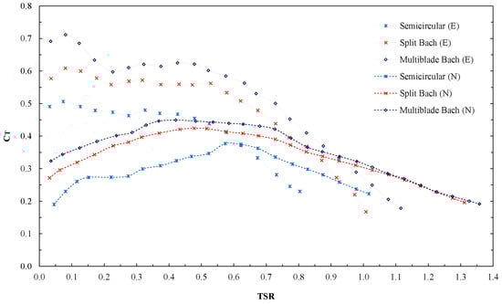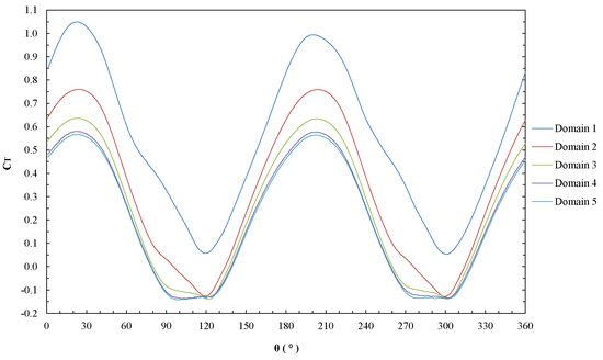Torque coefficient () according to azimuth () for each domain.