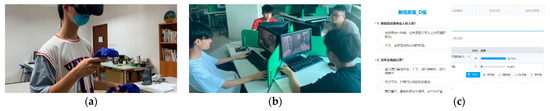 User Experiment: (a) Group A User Test; (b) Group B User Test; (c) Online Questionaries (WJX.cn Platform, accessed on 22 September 2021).