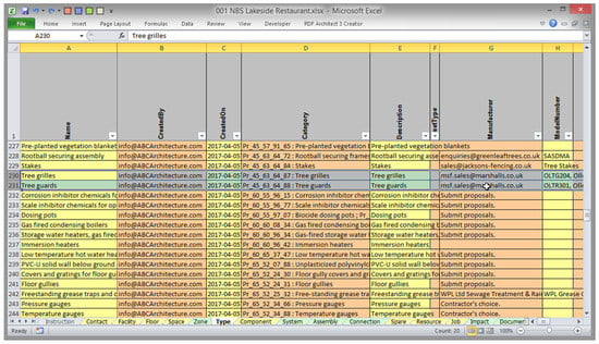 A parametric model of a building built using BIM, apart from enabling the generation of drawings needed to file for applicable permits, choose a contractor and for actual construction, can also be used during a building’s use along with previously entered data. To this end, non-graphical data should be saved, for instance in COBie format (Construction Operations Building Information Exchange, example presented in Figure 2), which can be used throughout a building’s entire life cycle.