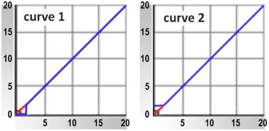 Another way to solve this problem requires much more commitment, and it also costs more. The quality of the print is greatly determined by the preparatory work in the prepress and printing processes [35]. Image processing in prepress should be made again by using a “bump-up” curve that sets 2% as the minimum value, thus ensuring the correct ratio between the anilox line screen and the plate line ruling. In some situations, it is better to remove the tones of 1% coverage (Figure 10, curve 1) and to increase all tones up to 2% coverage to a value of 2% in some others (Figure 10, curve 2). In this case, the optimal line screen of the anilox roller for a minimum dot size of 2% coverage was 315 c/cm (800 cpi). Of course, in the end, the printing plates also need to be made again.