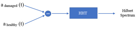 As shown in the flow chart of Figure 6, in this work the HHT is directly applied to the difference of the acceleration signals in the time domain: this is necessary to perform the IMF. A peak in terms of instantaneous energy, always associated to a specific frequency, allows detection of the presence of the damage and estimation of its position along the bridge.