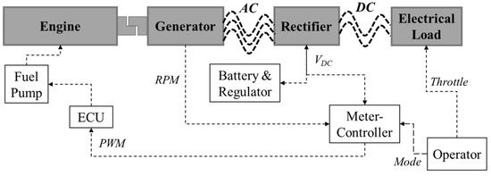 A basic schematic of the turboelectric system. The meter-controller determines the throttle sent to the turbine.