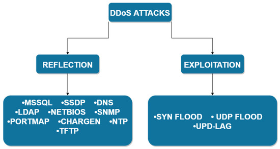 The attacks implemented in the CIC dataset were classified into two main branches, Reflection-based DDoS and Exploitation-based DDoS.