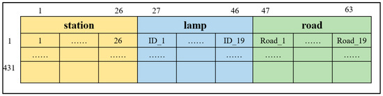 Therefore, this paper focuses on constructing feature sets with delay factors and constructing a random forest algorithm to study the key factors affecting the health of bus operation. Merging the three types of features, the final features of each bus trip are represented by a 63-dimensional vector, as shown in Figure 7.