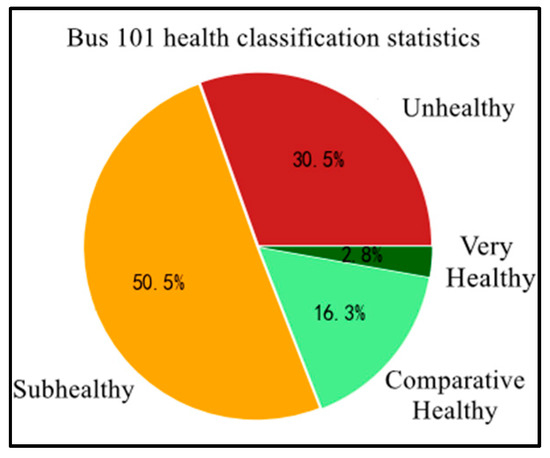 The decision tree algorithm was used to judge the bus operation health class of Foshan Bus 101 for a total of 431 trips from 21 November to 25 November 2016. The statistics are shown in Figure 10.