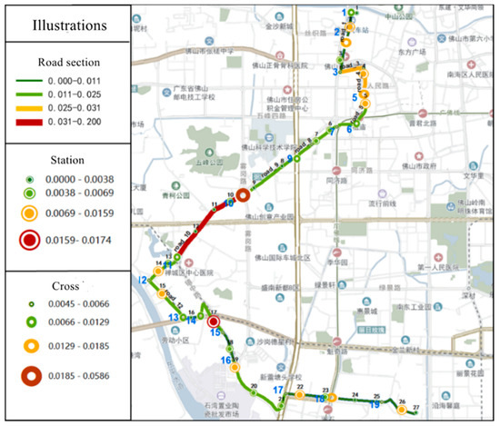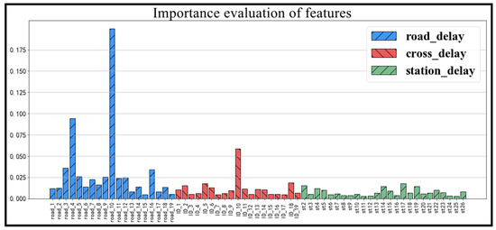 The importance scores were categorized according to road delays, cross delays, and station delays, as shown in Figure 17.