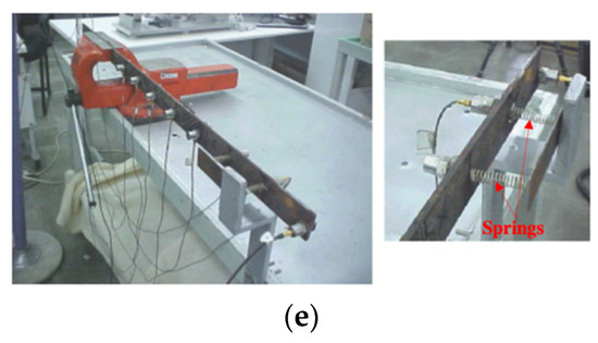It is worth mentioning that some successful applications show the feasibility of adding stiffness to the original structure for creating a modified system. The modified system with the attaching of additional structural components has been widely used for stiffness enhancement. For example, the Federal Emergency Management Agency (FEMA) provides guidelines for retrofitting structures by adding additional bracing in the existing structures [43]. Furthermore, curved dampers (CDs) and fluid viscous dampers (FVDs) are installed in building structures to enhance initial stiffness (Figure 1a,b) [44,45]. In addition, some specially made braces such as the buckling-restrained brace (BRB) allow the structural system to have a better seismic-bearing ability (Figure 1c), as stiffness is improved [46]. Steel diagonal braces added to the existing building frame is a common method to provide adequate strength and stiffness (Figure 1d). The additional springs were attached to the cantilever beam to achieve a stiffness increase in an experimental program (Figure 1e) [47,48]. Besides, different types of shear connectors in structures have been widely used to increase post-crack strength and initial stiffness, such as steel–concrete joint with bearing plates [49], semi-rigid connections [50], headed studs [51], Perfobond connectors [52], etc.
