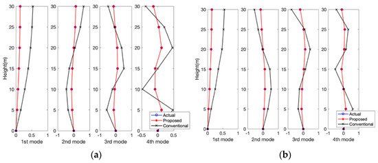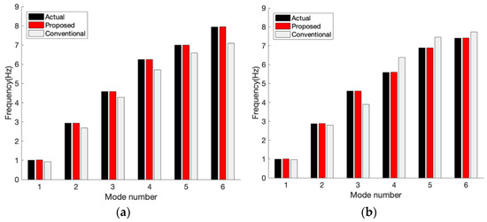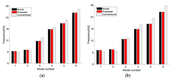 Finally, the coupling effect of mass and stiffness is fundamentally addressed using the new eigenequations, e.g., Equations (11) and (17), because mass updating by Equation (11) does not require any stiffness information. Likewise, updating stiffness does not require any mass information by Equation (17). It should be noticed that there are two fundamental rules for creating a modified system using known stiffness modification in Equation (6) with the following steps: step (1), a noticeable frequency change is observed between the original system and modified system; step (2), the mode shapes after modification change slightly [54]. Some recommendations for creating a stiffness-modified structure can be found in [47]. Further research on stiffness-change optimization strategies may be conducted under lab or field test conditions, which is beyond the scope of this work.