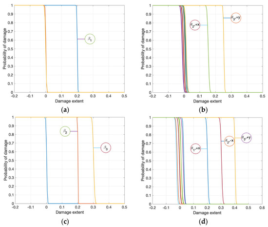 where represents the standard Gaussian cumulative distribution function for random variables; and represent the optimal value of the structural parameter and its standard derivation, respectively. The superscripts and represent the undamaged and possible damaged structural state, respectively.