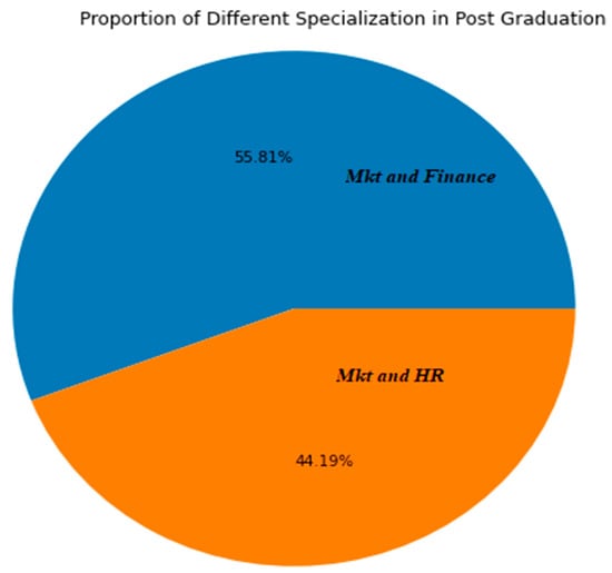 In Figure 4, the blue portion (1) represents Mkt and finance, and the yellow portion (0) represents the Mkt and HR. Figure 4 indicates that 55.81% of students take the MKT& Finance program in postgraduate education, and others take the MKT & HR field.