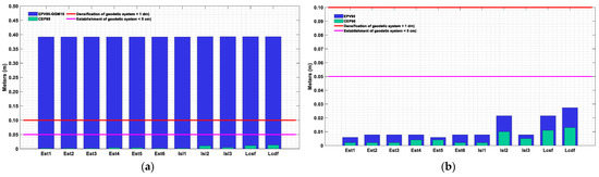 Differences in the CEP and EPV of Precise Point Positioning according to the INEGI technical standard. (a) EPV with inclusion of geoidal model GGM10; (b) EPV without inclusions of geoidal model GGM10.
