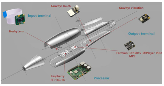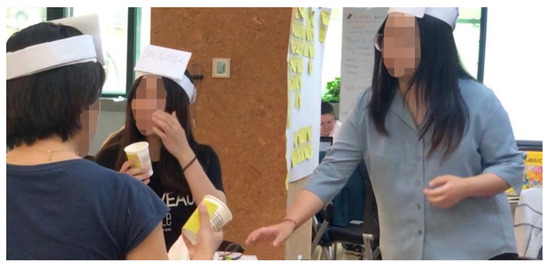 Prototyping is at the very heart of the design process because it is the most effective way to transform ideas into tangible products [17]. Students create numerous prototypes to articulate their vision and test their design assumptions. Through iterative prototyping in many ways, broad problem statements are refined into concrete concepts that are eventually incorporated into a fully functional prototype [18,19]. AR overlays digital content and information onto the physical world, as if they are actually there in the users’ own space. AR opens up new ways for the Internet of Things (IoT) devices to be helpful by letting the users experience digital content in the same way they experience the world. It lets the users search things visually, simply by pointing cameras at them [20]. It can put answers right where questions are by overlaying visual, immersive content on top of the real world. For example, the users can use AR to place 3D digital objects right in their own space directly from Search or from websites on Chrome, and with Live View in Google Maps, they can quickly orient themselves and know which way to go with directions overlaid right on top of the world. In VR and AR design and development workshops, multidisciplinary knowledge is integrated through interdisciplinary team collaboration. The application of psychological theory enables the student teams to define motivations behind design principles and create HCI solutions that satisfy people’s perception, attention, cognitive ability, and emotion.
