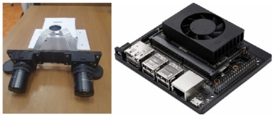 The physical model was built on a scale of 1:1 using aluminum extrusions and equipped with stepper motors, a control and communication system, and sets of sensors for positioning. The model can provide feedback both through a wireless connection and an installed display. Also, the research team tested a binocular vision system based on an Nvidia Jetson platform. Figure 3 shows its double-camera configuration and a control board.