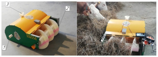 Thus, when using stepper motors and rigidly articulated drive wheels with an electric drive, it was possible to minimize the inaccuracy of the operation of kinematic pairs. In turn, the positioning systems must be made reliable since the robot may be out of animals’ reach during feed dispensing, contributing to the inaccessibility of the distributed feed.