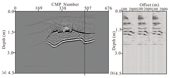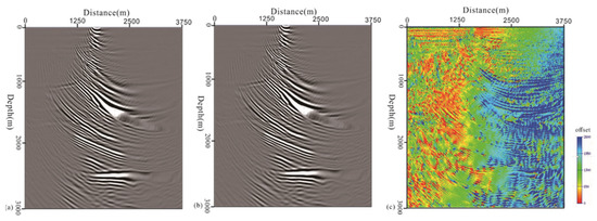 Figure 2a,b) from the two migrations to obtain the value of the offset at the imaging point.The imaging result is sortedby the calculated values of the surface offsets (