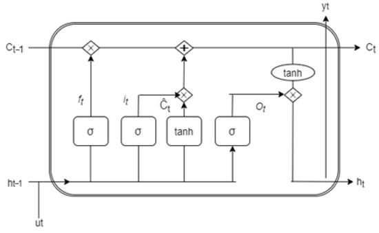 The LSTM network model consists of the cell memory that stores the summary of the past input sequence, and the gating mechanism by which the information flow between the input, output, and cell memory are controlled [23].