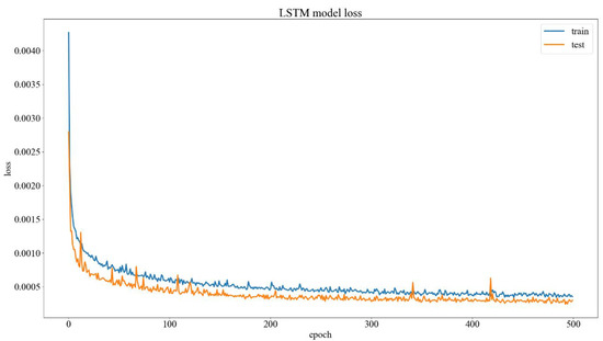 After training the model with several trajectories, an MSE of for the linear velocity in , an MSE of for the angular velocity in of , and an accuracy of were obtained Figure 11. The loss curve in Figure 12 shows that the proposed LSTM model reached a consistent minimum MSE over the training runs/epochs.