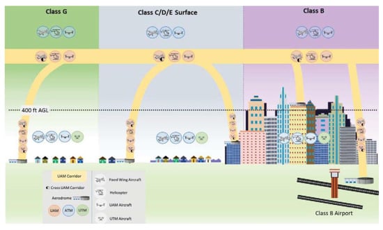 FAA airspace concept for UAM, UTM and ATM [5].