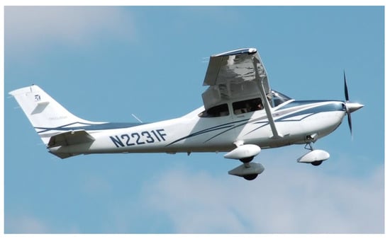 - Pingstone, A. File: Cessna182T Skylane N2231F Cotswold Airshow 2010 arp.jpg. Wikimedia Commons. Available online: https://commons.wikimedia.org/wiki/File:Cessna182t_skylane_n2231f_cotswoldairshow_2010_arp.jpg (accessed on 15 September 2021).